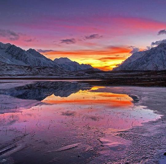 A view of the frozen sunset captured in Shandur Lake, Gilgit-Baltistan. Where the locals like to play Polo and live ordinary lives, Shandur serves as a tourist’s delight.